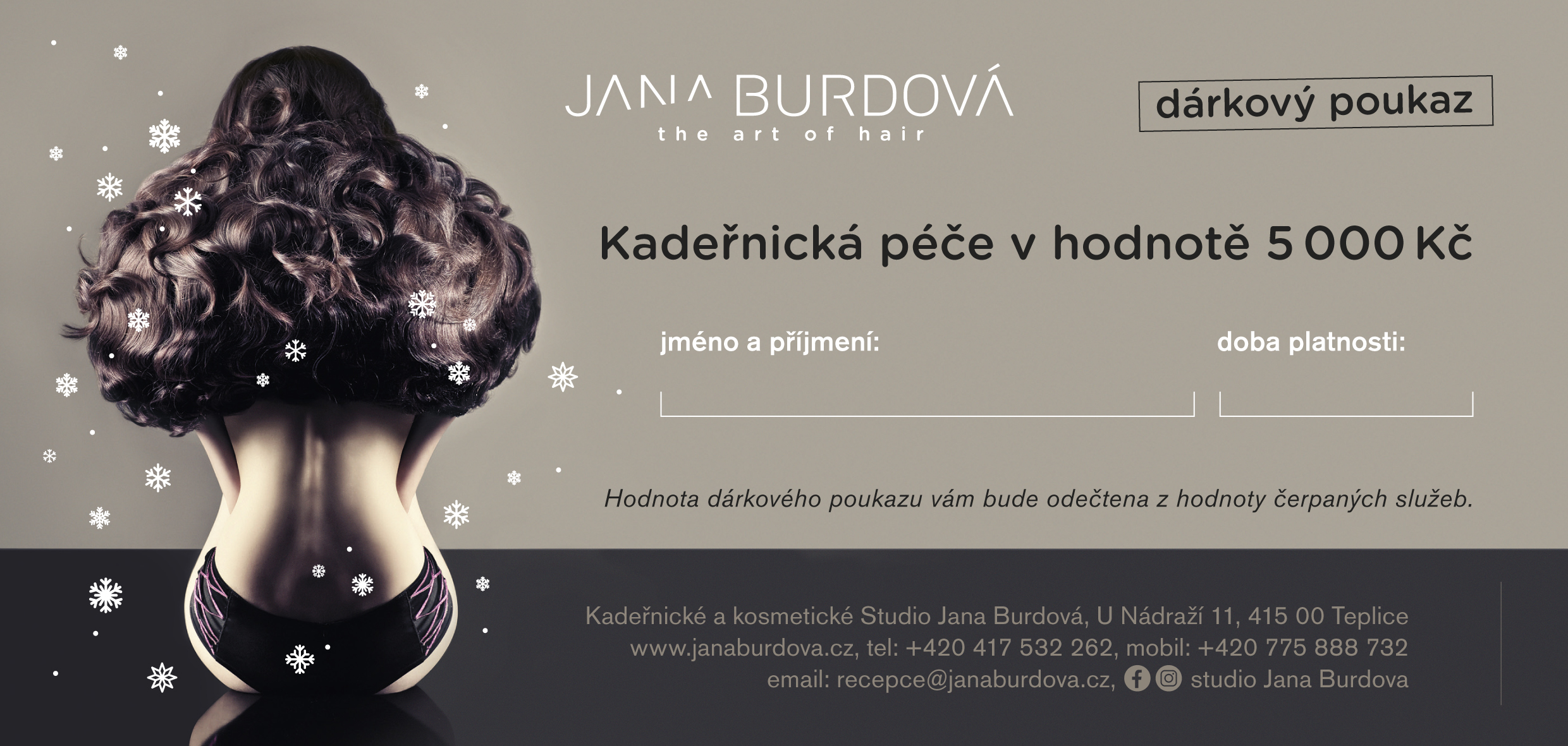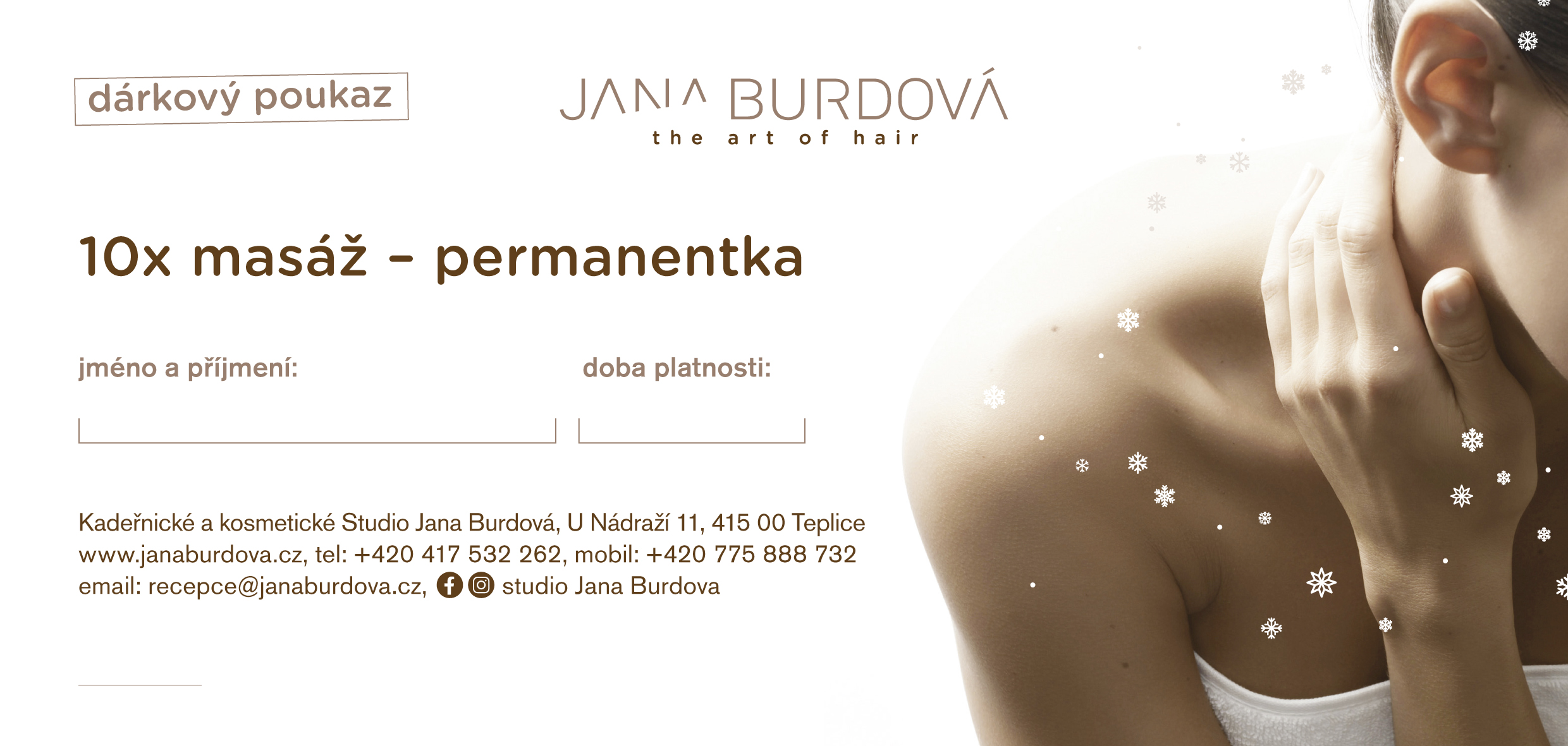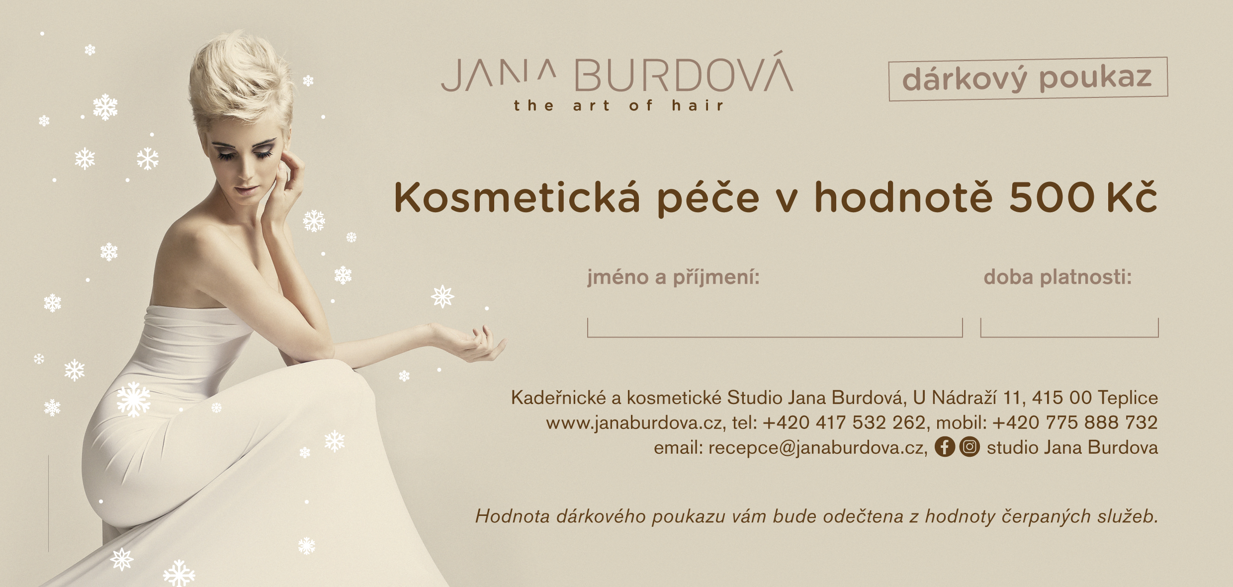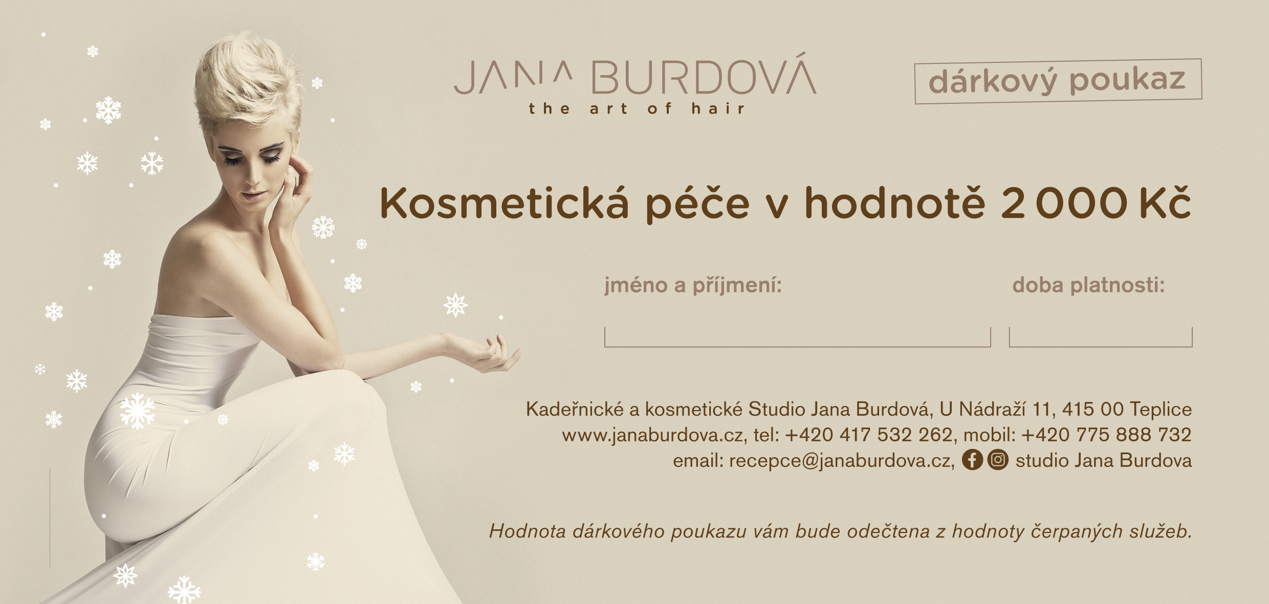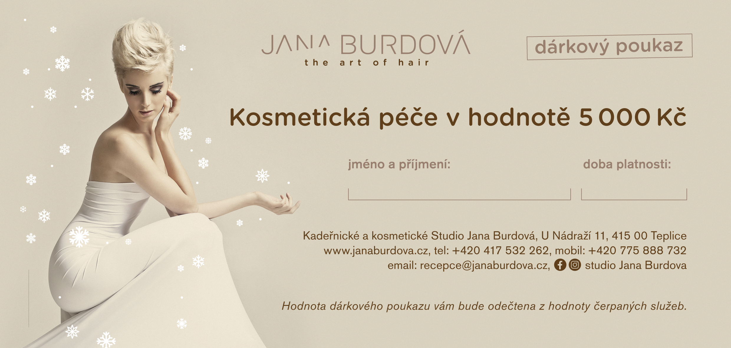 Platnost poukazu je 1 rok od data vystavení, prodloužení je možné za poplatek 20% z hodnoty poukazu.
